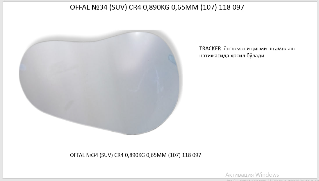 OFFAL 34 SIDE BODY ORT LH/RH CR4 0,89KG 0,65MM