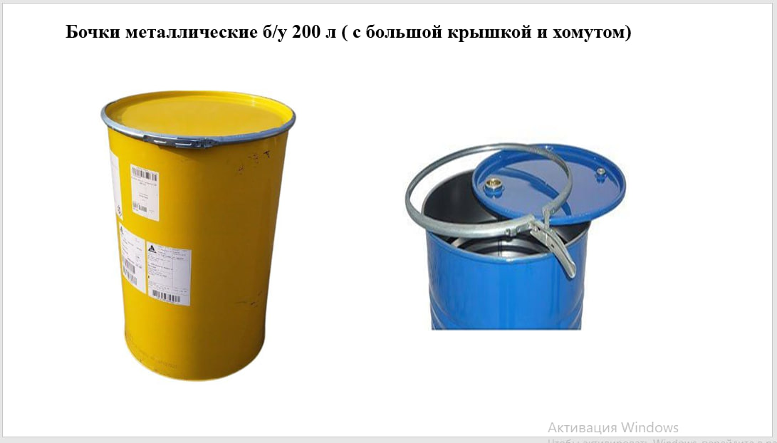 Бочки металлические б/у 200 л ( с большой крышкой и хомутом)