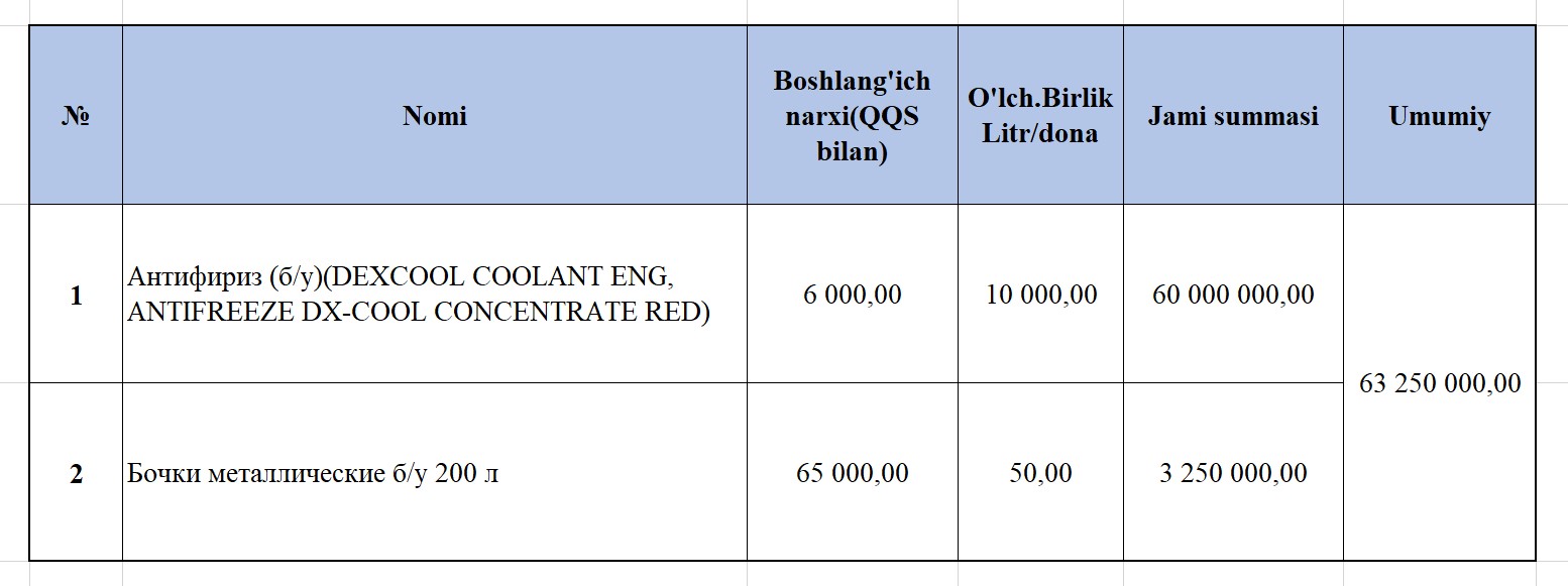 Антифириз (б/у) = 10000 L + Бочки металлические 200 л б/у = 50 dona.