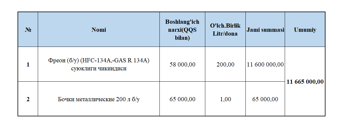 Фреон (б/у) = 200 L + Бочки металлические 200 л б/у = 1 dona.